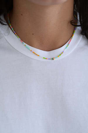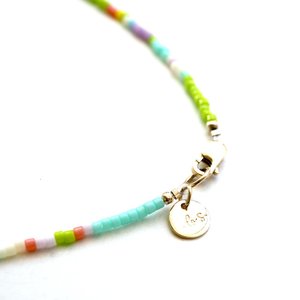 10K solid gold etched cube on a strand of glass seed beads with 10k solid gold clasp and 10k solid gold beaded accents. Length 16. Handmade.