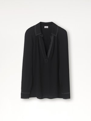 This is a shirt everyone should have in their wardrobe. The low, open neck keeps it fresh and fun, while the contrast stitching throughout pays homage to workwear. - Regular fit - Contrast stitching at the collar, sleeves, and neck - 100% viscose - Delicate machine wash