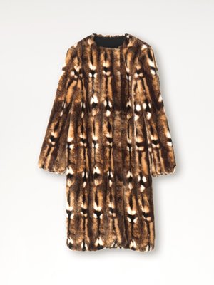 There's nothing subtle about this faux fur coat; you'll definitely stand out from the crowd while you stay warm. The plush texture and classic silhouette is glamorous without feeling stuffy. The coat features hidden hook and eye closures down the front, side pockets and an interior pocket. Regular fit Side pockets and interior pocket Hidden hook and eye closures down the front 50% polyester, 50% acrylic Dry clean only STYLE # Q67315001