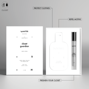 The Fabric Kit brings together By Matters fabric care essentials in one bundle. Closet Guardian keeps your wardrobe fresh and moth-free, Another Day refreshes fabrics, and the Ergonomic Brush helps to tackle dirt and stains on clothes and shoes.