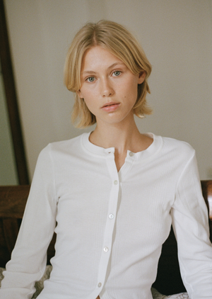The perfect lightweight summer cardigan. - Color: White - 100% Organic Cotton Fits true to size with a generous sleeve length. The model is wearing a M.