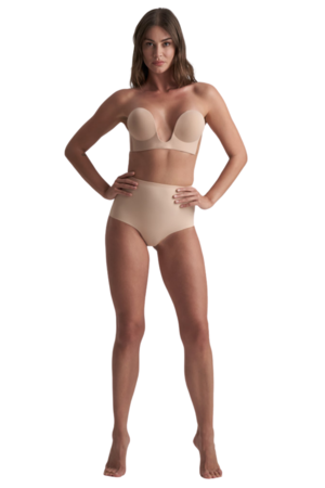 The Bye Bra Seamless U-Style Bra offers a flawless solution for low-cut, plunging, and halter clothing. It lifts and enhances your shape for deep necklines. Additional adhesive support at the base of the bra increases comfort and reliability. The Seamless U-Style Bra is a perfect solution for backless and strapless dresses or tops with plunge necklines. The bra can be reused up to 25 times with proper care and adherence to instructions. Care: Hand-wash the bra with warm water and mild soap after each use and let it air dry. Once dry, cover with the protective film. Composition: Fabric: 82% Polyamide, 18% Elastane. Adhesive: 100% Medical Silicone Glue.