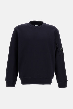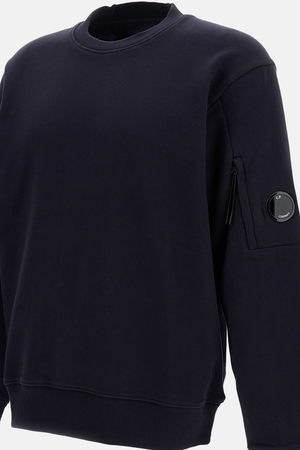 Men > Clothing > Sweaters > Sweaters Ribbed crew neck with embroidered logo2 on the back. Medium-weight diagonal raised fleece cotton fabric. Lens detail pocket. Ribbed cuffs and hem. Regular fit. Color: Blue. Composition: 100% cotton.
