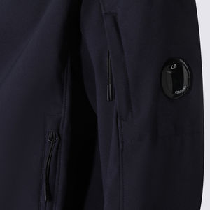 Men > Clothing > Coats & Jackets > Jackets Blue casual jacket from C.P. Company featuring long sleeves, zip fastening, high collar with hood, and ribbed cuffs and hem. Composition: 92% Polyester, 8% Elastane.