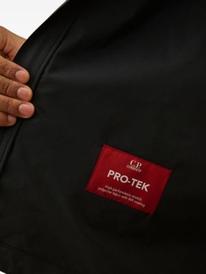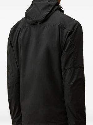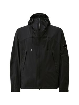 Men > Clothing > Coats & Jackets > Jackets Navy blue jacket with adjustable hood, side zip pockets, lens detail, adjustable cuffs, and a drawstring hem. C.P. Company suggests removing any detachable accessories before washing. Composition: 100% Polyester.