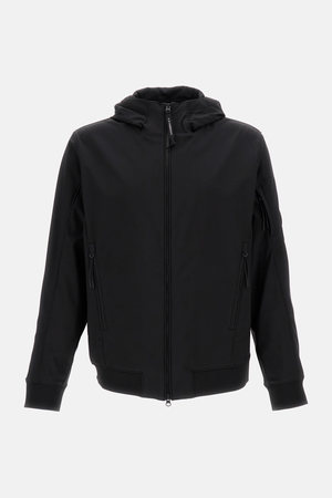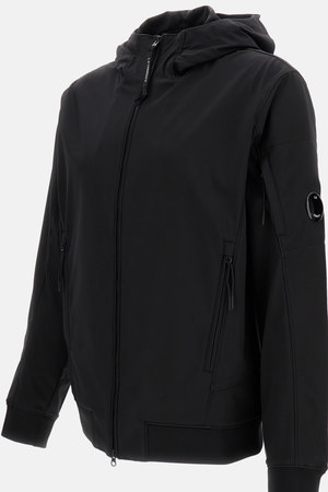 Men > Clothing > Coats & Jackets > Blazers Hooded jacket with front zip closure and side zip pockets. Features the signature C.P. lens on the arm. Color: Black Composition: 92% Polyester, 8% Elastane.