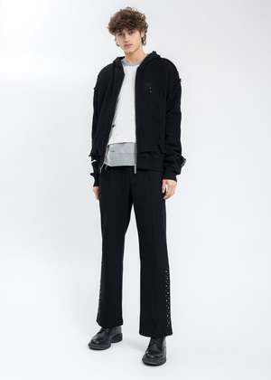 94%Cotton 6%Spandex Model is wearing size S Model is 63 (189 cm), 140 pounds (68 kg), usually wears M in tops. A size 30 in denim and 48 in trousers. Size 10 in shoes.