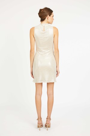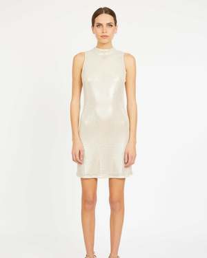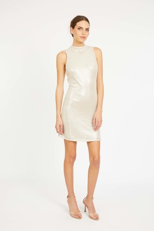 Make an unforgettable entrance in the Rayne Dress, a sleeveless silver sequin mini designed to shine from every angle. With its high neckline, tailored silhouette, and all-over shimmering sequins, this dress delivers instant glamour and a sleek, modern finish. A subtle keyhole back closure adds a touch of elegance, while the mini length keeps the look fun, flirty, and party-ready. Perfect for holiday parties, nights out, and special occasions where you want to sparkle. Details: - Sleeveless - Mini dress length - High neckline - Keyhole back closure - Silver sequin lace A radiant standout piece made for your most memorable moments.