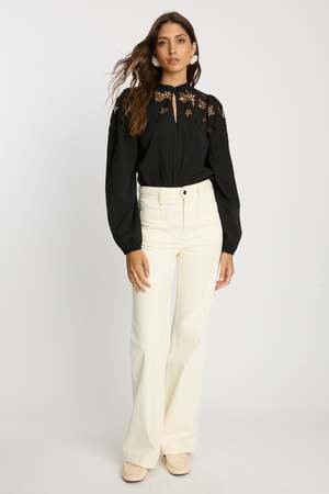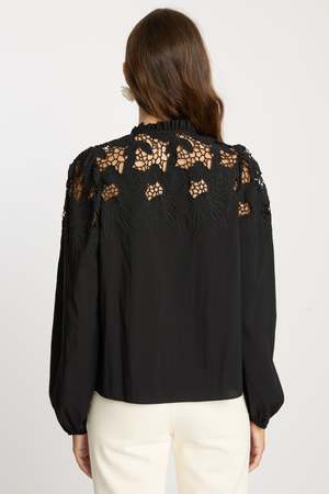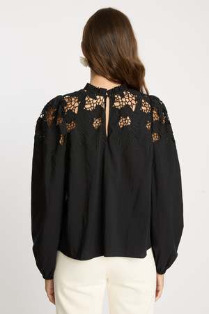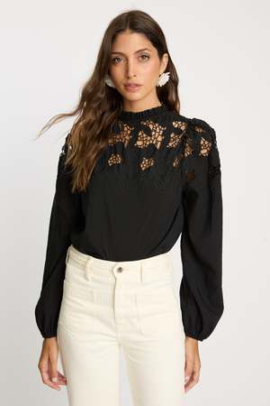 Elegant with a modern edge, the Riana Top in black is a versatile statement piece designed to elevate everyday dressing. Crafted with delicate floral lace detailing across the yoke and shoulders, it offers a subtle sheer contrast that feels both refined and feminine. The long sleeves feature softly gathered cuffs for a relaxed silhouette, while the standout reversible keyhole back allows you to wear it two wayskeyhole at the front or backgiving you styling flexibility from day to night. Finished in classic black, the Riana Top pairs effortlessly with tailored trousers, denim, or skirts. Type: Blouse