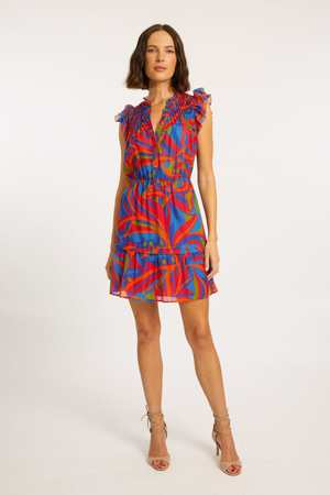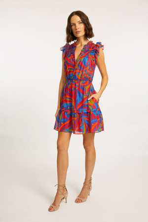 The Boa Dress by Caballero features the vibrant Passion Palm print, combining style and comfort. A smocked front panel adds texture and visual interest, while flutter sleeves enhance its femininity and a tiered skirt provides fluidity and movement. The elastic waistband ensures a flattering fit, and button details down to the waist add a refined touch. Crafted from a soft blend of cotton and viscose, the Boa Dress is breathable and ideal for warm weather. With its bold tropical print and elegant details, it's perfect for both casual and dressier occasions. - Relaxed fit - V-neck with smocked panel and ruffles - Flutter sleeves - Buttoned bodice - Elastic waistband - Side pockets - Tiered skirt - Fully lined - Pull-on style - Color: Passion Palm - True to size - Model wears size XS - 60% Cotton, 40% Viscose - Lining: 100% Viscose - Dry clean only