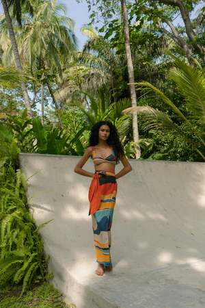 Bettina Bikini Top in Terramulti. Founded in Cali, Colombia, Cala de la Cruz is a dynamic resort wear brand fusing bold yet simple designs with a conscious mindset. Its inspired by nature and the beauty of the everyday, with timeless silhouettes elevated with graphic, often retro-imbued florals that capture the countrys spirited energy. Sizing + Details - Made In Colombia - Recycled Polyester, Polyamide, Elastane, Lined Cups, Pullover Styling - Hand Wash - Print May Land Differently In Every Piece