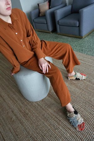 CALLA BABOUCHES EULI STYLE. CALLA HAYNES , A TORONTO NATIVE NOW BASED IN PARIS, HAS CREATED A SUSTAINABLE LINE OF BABOUCHE SLIPPERS THAT EMBODY CONSCIENTIOUS DESIGN AND CELEBRATE MOROCCAN CRAFT. EACH PAIR IS HANDMADE AND ONE OF A KIND, UPCYCLED WITH VINTAGE BERBER RUGS. LEATHER SOLE WITH 1/4 INCH STACKED HEEL. THE BABOUCHES EULI IS NEW TO THE COLLECTION AND IS MADE IN COLLABORATION WITH EWANIKA. The Euli slippers for Ewanika are made from one carpet carefully chosen for colour and fabric. Runs true to size from 7 to 11, if not on the small side. For half sizes, please size up.