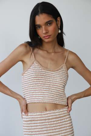 The Teddy Tank from Callahan Knitwear is a cropped tank made from a nubby cotton yarn. It looks good on and off shore and pairs especially well with the Teddy Maxi Skirt. Type: Crop Top