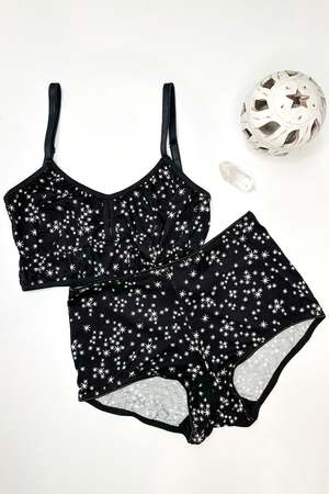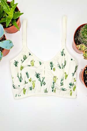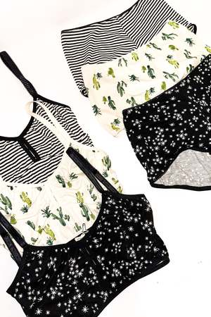 Add an edgy, racy touch to your outfits with this adorable bralette! Wear it underneath a blouse, or underneath an oversize cami as a flirty tease! Bras are always made without underwire, yet they provide such great support, you won't miss it! Their adjustable straps and soft, double cup fabrics make these bras so comfortable, you can even sleep in them. Ethically made in USA Polyester / lycra blend. Machine wash cold delicate, line dry
