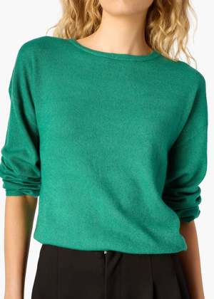 Boxy fit crewneck sweater with raglan sleeve. Sweater hits at high hip. 54% Extrafine Merino Wool, 23% Cashmere, 23% Silk. Dry clean and steam only. Fits true to size. We recommend taking your regular size. Model is 5'9" wearing a size XS.