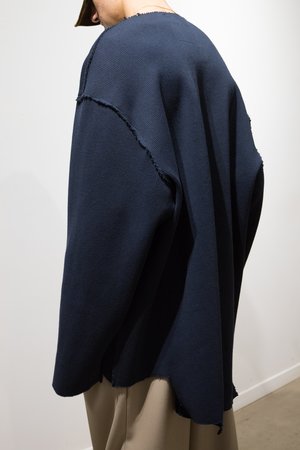 Oversized Sweater in Heavy Rib Jersey Knit. Cut-out piece with raw details at the neck, sleeve and hem. 58% Poly 32% Viscose 10% Lycra Model wears a Size Medium