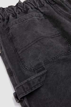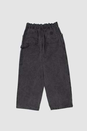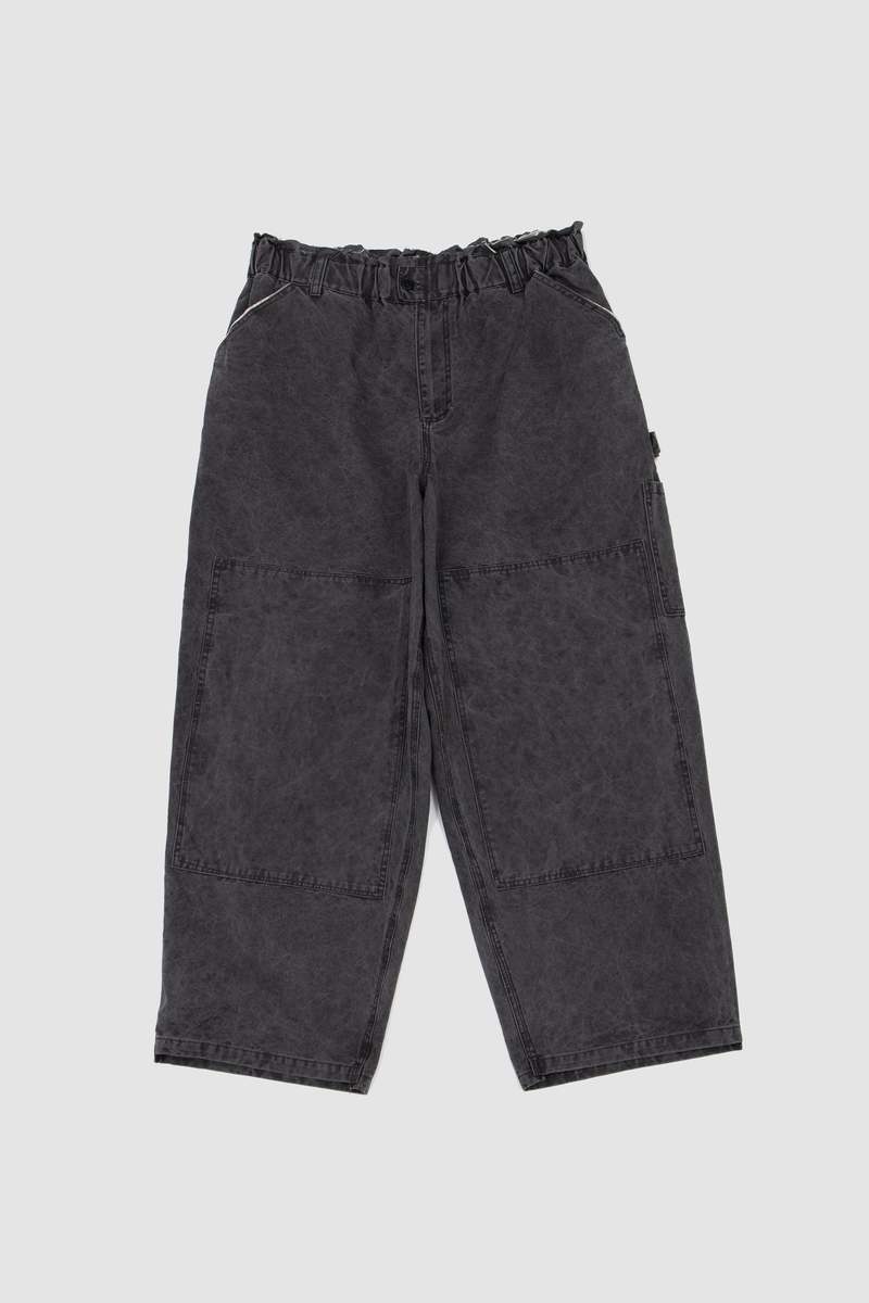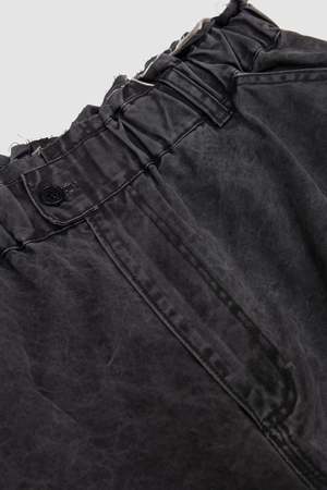 Oversized wide leg pants with a relaxed fit, an elasticated waistband, raw edge details, and irregular topstitching.
