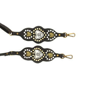 Phone shoulder strap in garment-dyed, vegetable-tanned cowhide leather with heart studs. - Dimensions: H 1 cm | 0.39 inches - Composition: 100% leather - Accessories included: Dust bag - Weight: 0.09 kg - Material: Vegetable-tanned cowhide leather - Crossbody strap length: 104/135 cm | 40.56/52.65 inches - Made in Italy