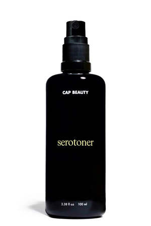 The Seratoner Toner by CAP Beauty is a soothing and nourishing mist designed to calm and deeply hydrate sensitive, dry, and reactive skin types. Inspired by resilient desert botanicals, this toner utilizes cooling aloe, agave, and prickly pear to reduce sensitivity and draw in moisture. Griffonia seed extract provides a natural precursor to serotonin for healthier-looking skin. Rose, neroli, and coconut work together to protect against environmental stressors and create a light, floral scent. 3.38 fl oz / 100 ml Gluten Free. Vegan. Ingredients: Aloe Barbadensis (Aloe Vera) Leaf Juice, Rosa Damascena (Rose) Flower Water, Glycerin, Sodium Hyaluronate, Salix Nigra (Willow) Bark Extract, Water/Aqua/Eau, Populus Tremuloides (Aspen) Bark Extract, Cocos Nucifera (Coconut) Extract, Opuntia Ficus-Indica Stem Extract, Xylitylglucoside, Anhydroxylitol, Xylitol, Saccharomyces/Agave Americana Leaf Ferment Filtrate, Griffonia Simplicifolia Seed Extract, Citrus Aurantium Amara (Neroli) Flower Oil, Rosa Damascena (Rose) Flower Oil, Boswellia Carterii (Frankincense) Resin Extract, Salvia Sclarea (Clary Sage) Flower/Leaf Oil, Santalum Spicatum (Sandalwood) Wood Oil, Citrus Aurantium (Petitgrain) Leaf/Bud Oil, Caprylyl/Capryl Glucoside, Sodium Levulinate, Sodium Anisate. Ingredients in bold are certified organic.