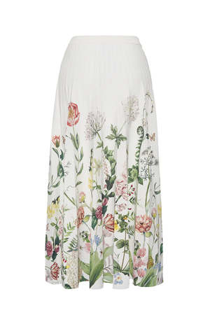 Midi flare skirt with border print floral. Features vertical ottoman stitch detail, an elasticated waistband, and a flared midi-length body in a pull-on style. Type: Skirt.