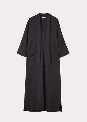 In a soft jersey fabric with a front tie detail and pockets, and crafted in a heather grey tone.