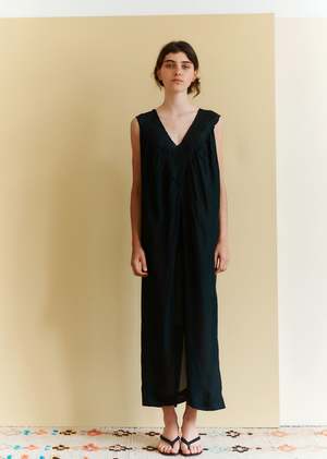 The Panelled Dress by Caramel features delicate embroidery and refined trims, inspired by the elegance of the 1920s. A graceful V-neckline draws the eye to the waist, where the design falls into a soft, fluid drape. Cut in 100% silk, the fabric skims rather than clings, moving with understated ease. One size: fits UK 8 - UK 12. Length: 132cm Chest (measured flat): 51.5cm Hips (measured flat): 54cm Care: Dry clean only, reduced cycle.