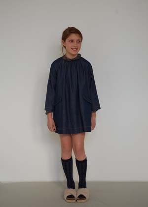 Understated elegance with an alluringly loose silhouette, our Malika Girl Dress is a Winter essential. Crafted in exquisite Midnight Blue light denim, the raglan sleeves and gathering at the neckline create an A-line shape, whilst the flap pockets accent the vintage feel. With a three-button fastening at the back for ease of wear, the lightweight denim is an elevated take on everyday dressing. 100% Light Denim Cotton.