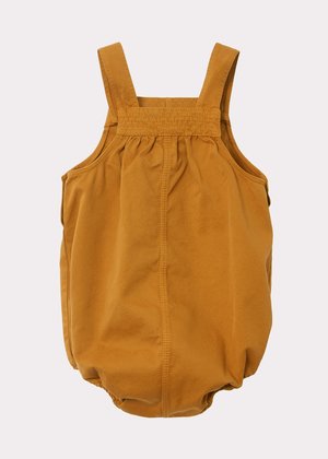 Versatile, baby romper in comfortable retro design. In beautiful 100% cotton twill and sporting a delectable mustard tone. With popper opening at the crotch and button down at the back, this is a practical romper for all occasions. A wardrobe essential, an overall that will be a staple. 100% Cotton