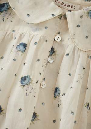 The Nina baby set offers a fresh take on a classic, reimagined this season in Rose Bouquet, the delicate floral print designed in Caramel's London studio. The baby dress features a rounded collar, a nod to favourite vintage styles, with puffed sleeves and pearlescent buttons adding soft charm. Coordinating bloomers are fitted with an elasticated waist to ensure comfort and ease of movement, making this baby girl set a perfect piece for everyday play. Care 100% cotton.