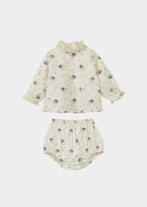 The Sana baby set offers a fresh take on a classic, reimagined this season in Rose Bouquet, a delicate floral print designed in Caramel's London studio. Inspired by favourite vintage styles, the baby blouse features an A-line silhouette, playful ruffles at the neckline and cuffs, and a button fastening at the back for ease of wear. The coordinating bloomers feature an elasticated waist and leg openings. Light and breathable, this baby set combines considered design with playful charm, perfect for everyday wear or special occasions. Made from 100% cotton.