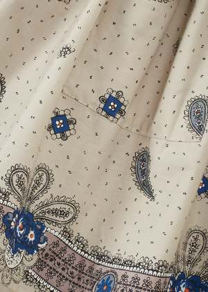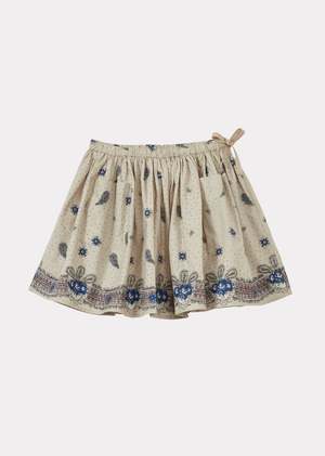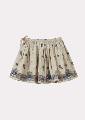 Crafted from lightweight cotton, the Myla girls skirt features a beautiful mauve paisley print, created using a combination of screen-printing and hand-block printing techniques. Its circular cut and softly gathered silhouette create beautiful movement. An elasticated waist with an adjustable cord ensures a comfortable fit, while patch pockets at the front add a playful touch. Due to the hand-crafted nature of the print, slight variations in colour and placement may occur. Fabric: 100% cotton.