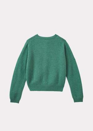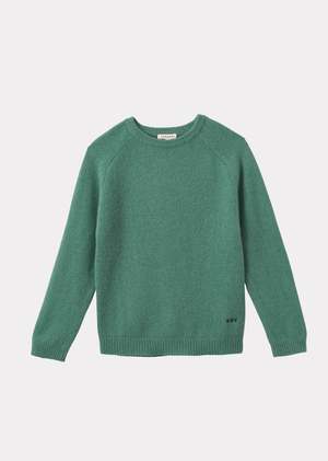 A year-round staple, the Poa Jumper returns this season in chic sage green. Crafted from feather-soft mid-gauge cashmere, this kids' sweater boasts a crew neck, raglan sleeves, ribbed detailing at the cuffs, neckline, and hem, and discreet CBC embroidery.