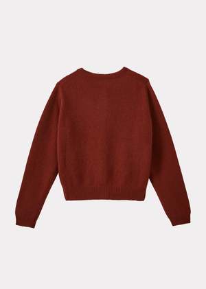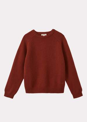 Crafted from feather-soft cashmere, the Poa children's jumper in a warm cinnamon hue is a versatile staple. This children's sweater features a classic crew neck, raglan sleeves, and ribbed detailing at the cuffs, hem, and neckline. Discreet tonal CBC embroidery adds a subtle finishing touch. Fabric: 100% cashmere.