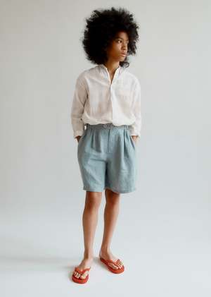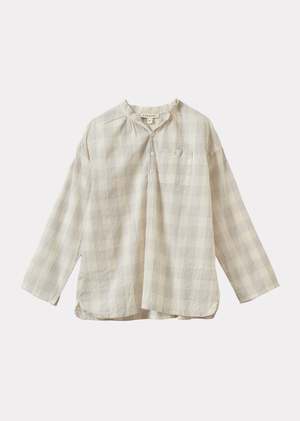 The Adonis boy's shirt, in a subtle grey micro-check, combines the softness of hand-loomed cotton with a laid-back, collarless button-down design. Featuring a single breast pocket and a relaxed fit, it's the perfect go-to piece for effortless, all-day wear.