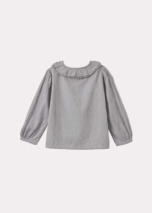 Fall in love with our Phoebe Blouse. Adorned with a ruffle collar and delicately embroidered picot edge, it is crafted from airy, soft cotton hand-loomed by the artisan community. The lightly puffed sleeves add a touch of whimsy while contrasting white buttons offer a modern finish.