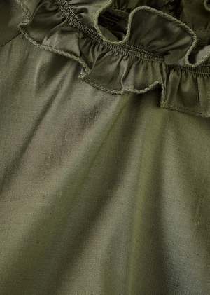 The Calliope Blouse is crafted from soft silk taffeta in a rich green hue. This peplum girl's top features a high neckline and subtle gathering at the waist. Pair the Calliope with the Janine Skirt in the same shade.