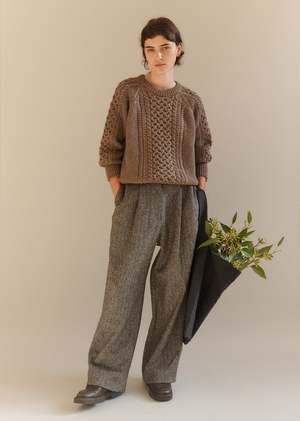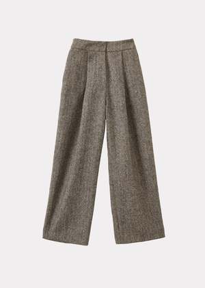 Crafted in a striking herringbone tweed, our pleat trouser features a wide leg and high waist. Easily adjustable with metal buckles and rear pockets, the trouser can be dressed-up with a blouse or paired with a jumper for an effortlessly elegant feel.