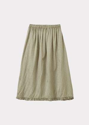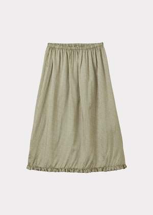 A contemporary take on a classic pattern, our Green Gingham Microcheck is featured in a frill skirt. Midi-length with an elasticated waist, the skirt's flattering cut guarantees a perfect fit. A year-round staple that can be paired with a jumper for the cooler months and a t-shirt during spring and summer.