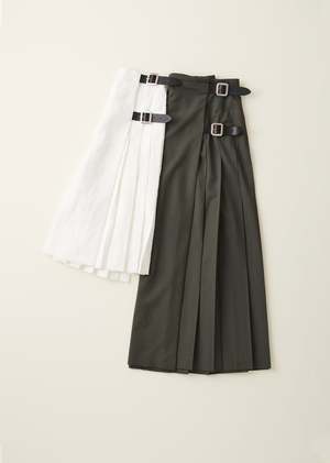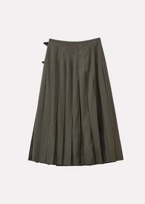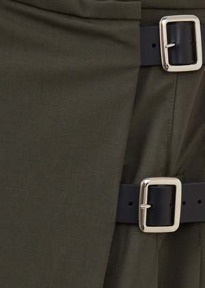 In a timeless green hue, our iconic kilt has been skilfully crafted in Scotland using the finest Italian wool. Elegant and light in texture, the wool has been sourced by our team from one of the oldest mills. Paying homage to the rich textile heritage of Britain and featuring beautiful, traditional details like the leather straps, this elegant skirt is the perfect piece to add to any wardrobe.