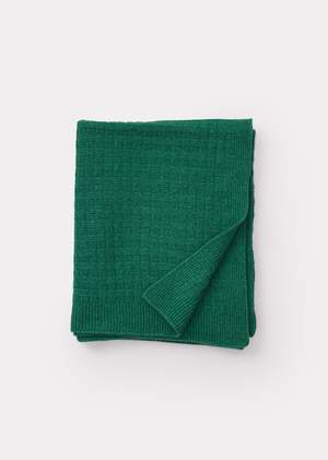 Ideal for chilly nights; our knit blanket in sea green. Rendered in a warm and soft wool and using sustainable manufacturing methods. 85 x 140CM