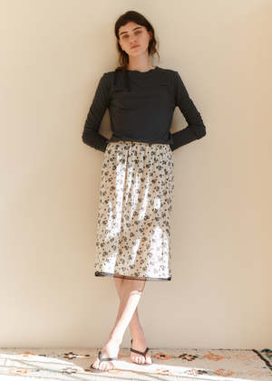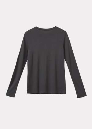 This round neck, long sleeve cotton t-shirt in a shade of charcoal confers a chic sportiness on any outfit. The relaxed fit and muted but mighty colour elevates wardrobe basics. Acting as the neutral base, it pairs wonderfully with jolts of colours and prints.