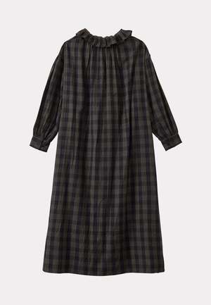 Crafted from soft hand-loomed check, the Frill Collar Dress brings lightness and relaxed sophistication to everyday dressing. Caramel's signature frill detail at the collar adds a vintage-inspired charm, while the relaxed silhouette offers comfort without compromising on style, effortlessly pairing with understated accessories. A piece designed for quiet moments and sunlit afternoons, its as graceful as it is wearable. 100% Cotton.