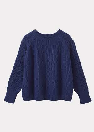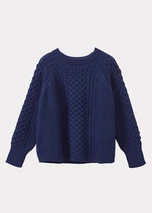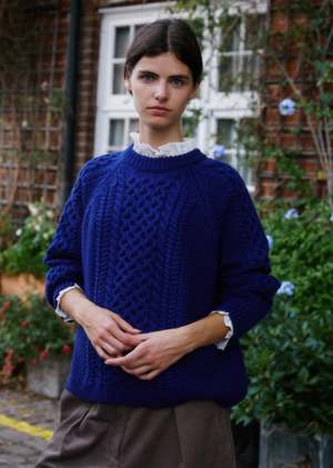 Inspired by the traditional Irish knit, our Aran jumper in denim blue is the perfect sweater. Our Aran jumpers are handcrafted in Peru from the finest Andean wool, making them the perfect winter warmer. Layer over jeans or a dress for an effortlessly elegant look.