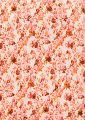 Pretty tote bag, in our heavenly bright pink floral print of burnt flame orange and brown on a beautifully complimentary off white background. Perfect for carrying summer essentials to the park or the beach for a day frolicking in the sun. Width: approximately 50 cm, Height: approximately 33 cm 100% Cotton