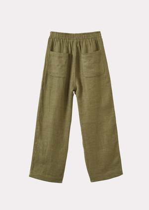 Our classic caper trouser features in a cool khaki for AW23. These trousers are designed with a drawstring waist to ensure maximum comfort, while the curved knee seam enhances flexibility and adds a distinctive flair. For an effortlessly cosy outfit, combine them with our Cero sweater.