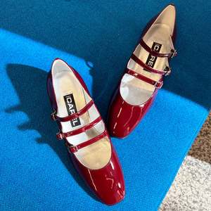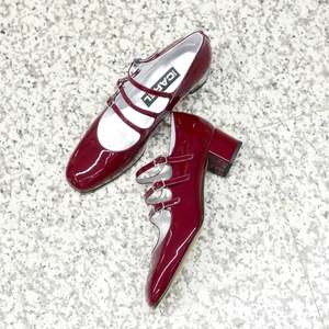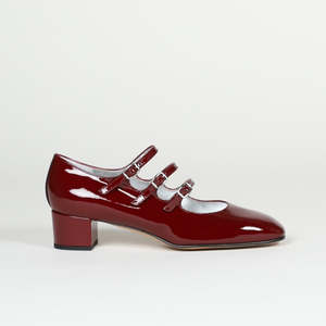 Classic mary-jane shoes in patent leather with silver leather lining and leather sole. They feature three straps, silver metal buckles and a 4-cm heel. Made in Italy. 100% Calf leather. Italian sizing. They run true to size