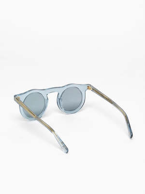 The Lind sunglasses are inspired by none other than Folk Rock legend Bob Lind. This unique and contemporary silhouette is marked by a round lens design. Created using Zyl acetate, a material comprised of wood pulp and cotton fibers. The crystal grey-blue frame is finished with pale blue-gray lenses produced by Zeiss Optics that offer 100% UVA+ UVB protection. These are classic, timeless, and built to last through years of wear. PLEASE NOTE: This piece is for sale in PHASE (grey-blue frames and lenses). All other images/colors are for reference only. Designed in Brooklyn, NY. Handmade in Italy. DETAILS Material | 100% Acetate Color | PHASE / GREY-BLUE Designer | CARLA COULOR SIZING One size fits most. Lens diameter: 42mm/1.65" Bridge width: 26mm/1" Temple length: 145mm/5.7" CARE Glasses accompanied by a case, box + cleaning cloth to protect glasses and care for them.