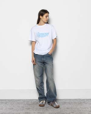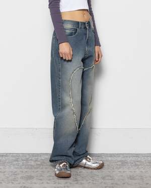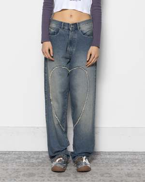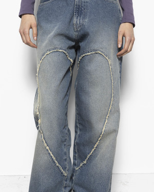 Carne Bollente Love Pants 00's pants are straight-legged trousers featuring a large heart-shaped cut-out, which is separated by the legs with frayed edges. These pants feature a 5-pocket construction, belt loops with a branded vegan-leather patch on the back, and a zipper fly. - 100% cotton twill - Made in China - Machine wash cold, hang dry - Style code: SS25DP0303 Stella is 5'8" (173 cm) and is wearing a size 28.