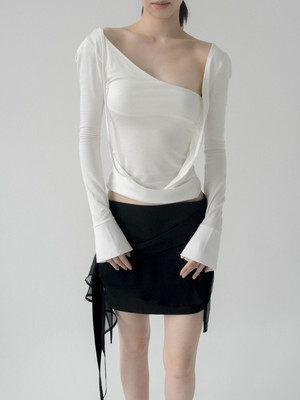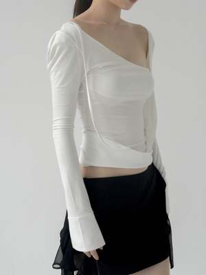 Fitted long-sleeve top featuring an asymmetric neckline and wrapped panel construction. - 70% Tencel, 30% Cotton - Fitted silhouette with asymmetric neckline - Long sleeves with cuffs - Hand wash warm or preferred dry clean - Length: 51cm for XS and S; 53cm for M and L