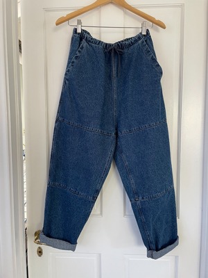 Runs a bit large. Perfect condition. The Quimby Pant is a simple pant with a drawstring waist and straight leg. Slightly cropped with side seam pockets. Made with 100% cotton denim for fall, we love the Quimby Pant paired with your favorite vintage sweatshirt.